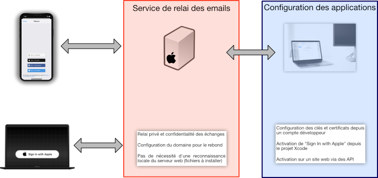 L'architecture de "Sign In with Apple" fait intervenir un serveur privé de relai des emails piloté par Apple.
